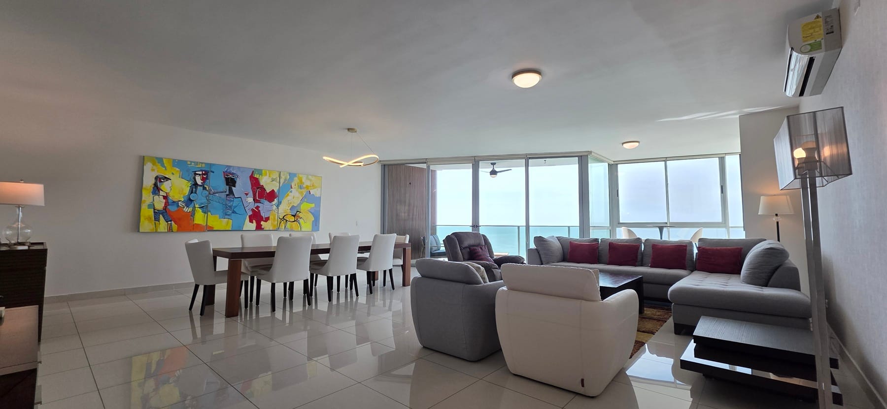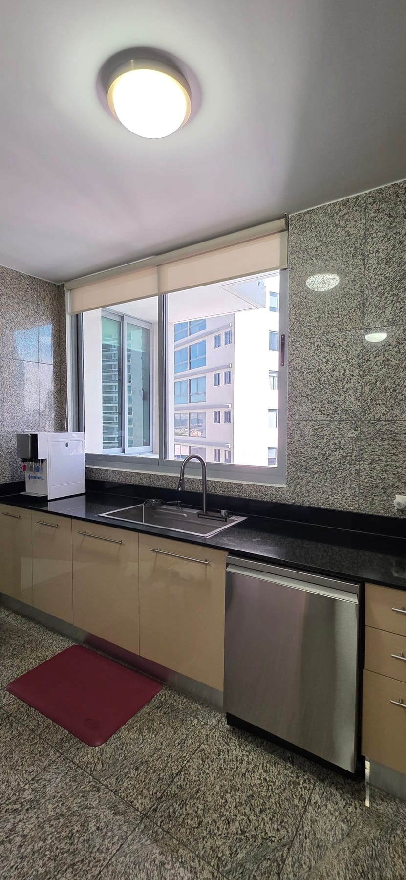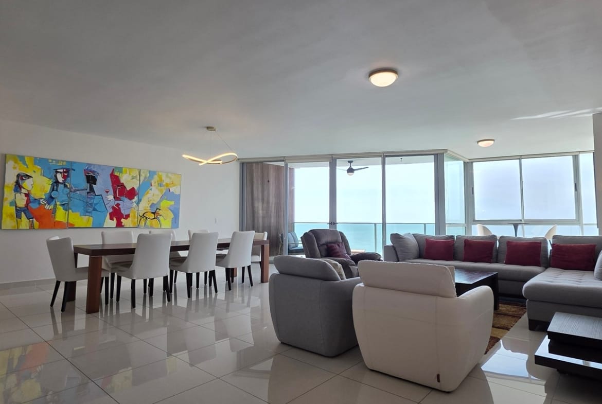 With a total area of 287 m², the apartment boasts a spacious living and dining area that opens onto a balcony with spectacular ocean views—perfect for relaxing or entertaining. Additional spaces include a den, a modern kitchen, and a laundry area.